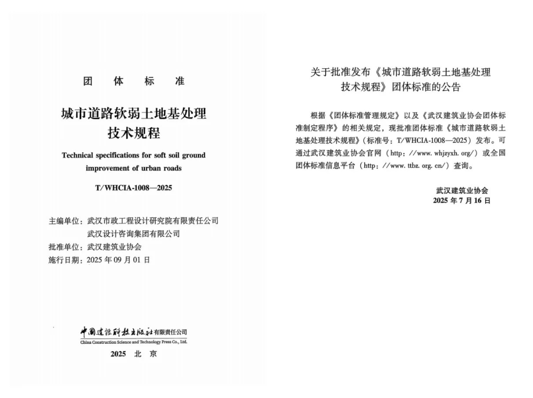 武漢市政院與武漢設(shè)計(jì)咨詢集團(tuán)聯(lián)合主編的團(tuán)體標(biāo)準(zhǔn)《城市道路軟弱土地基處理技術(shù)規(guī)程》,已由武漢建筑業(yè)協(xié)會批準(zhǔn)發(fā)布。該規(guī)程是國內(nèi)首部專門針對城市道路軟弱土地基處理的技術(shù)標(biāo)準(zhǔn),有效解決了現(xiàn)行建筑與公路規(guī)范在市政道路工程中存在的諸多不明確、不統(tǒng)一的應(yīng)用問題。其內(nèi)容系統(tǒng)全面,兼具實(shí)用性與先進(jìn)性,既體現(xiàn)了市政行業(yè)特色,又契合城市道路實(shí)際建設(shè)需求,對湖北省內(nèi)城市道路軟弱土地基處理的設(shè)計(jì)、施工、關(guān)鍵技術(shù)方法及檢測監(jiān)測等方面提供了權(quán)威依據(jù)與科學(xué)指導(dǎo)。該《規(guī)程》整體達(dá)到國內(nèi)先進(jìn)水平,在行業(yè)與省內(nèi)居于領(lǐng)先地位。它的發(fā)布進(jìn)一步鞏固了武漢市政院在市政巖土工程領(lǐng)域的技術(shù)優(yōu)勢,顯著提升了公司的行業(yè)影響力與核心競爭力。