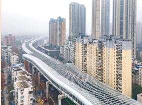 ? ? 項目設(shè)計團隊始終秉持 “輕量化、智能化、綠色化” 理念,多項技術(shù)應(yīng)用填補區(qū)域空白,樹立行業(yè)新標桿。在鋪裝材料與工藝上,主線高架鋼箱梁橋面采用澆注式瀝青鋪裝,相比傳統(tǒng)方案減重16%,既降低橋梁結(jié)構(gòu)負荷、提升安全性,又縮短施工周期;鋼箱梁采用U肋全熔透智能焊接,大幅提高結(jié)構(gòu)疲勞壽命,積極推進鋼箱梁U肋焊接工藝的發(fā)展。尤為引人注目的是,本項目集中展現(xiàn)了三大創(chuàng)新亮點:它擁有全國最長的連續(xù)全封閉聲屏障,是湖北省首例“光伏+市政”的融合實踐,更在武漢率先實現(xiàn)了聲屏障光伏發(fā)電的應(yīng)用,為綠色市政建設(shè)樹立了新的樣板。