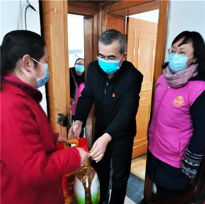 在古二社區(qū)書記徐培莉的陪同下,談逢陽(yáng)一行先后來(lái)到社區(qū)三位困難群眾家里中,詳細(xì)詢問了他們的家庭及生活情況,并為他們送上了慰問物品,叮囑他們要保重身體,鼓勵(lì)他們克服困難,以積極樂觀的精神狀態(tài)面對(duì)生活。