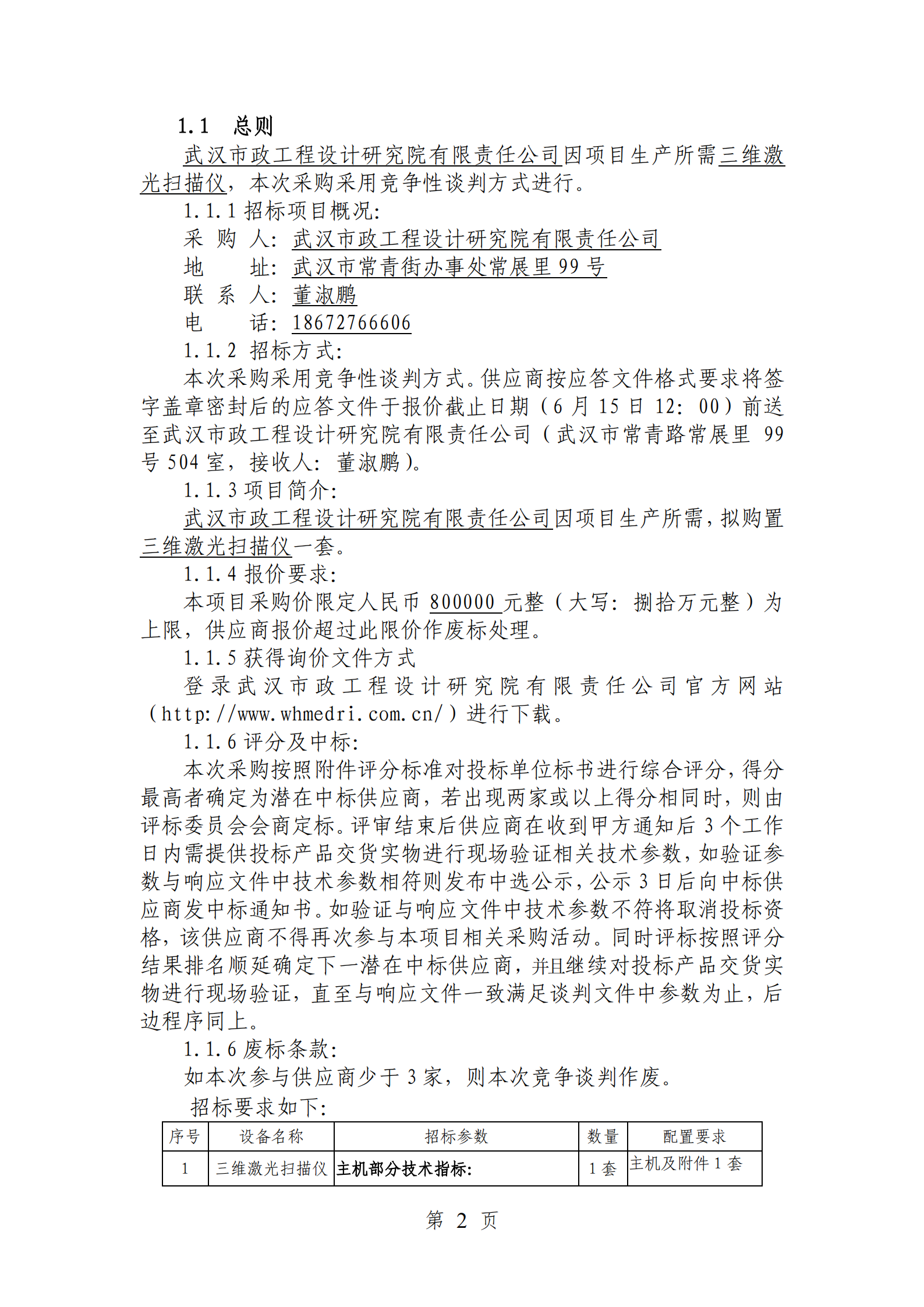 三維激光掃描儀競爭性談判文件